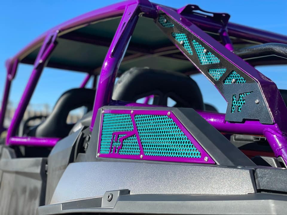 Our unique truss design gives you the option to add multiple colors to your cage! With the mesh (blue part on the cage) and our bolt on cover plate (black part on the cage with HF logo) you can really make your cage stand out from the rest!
